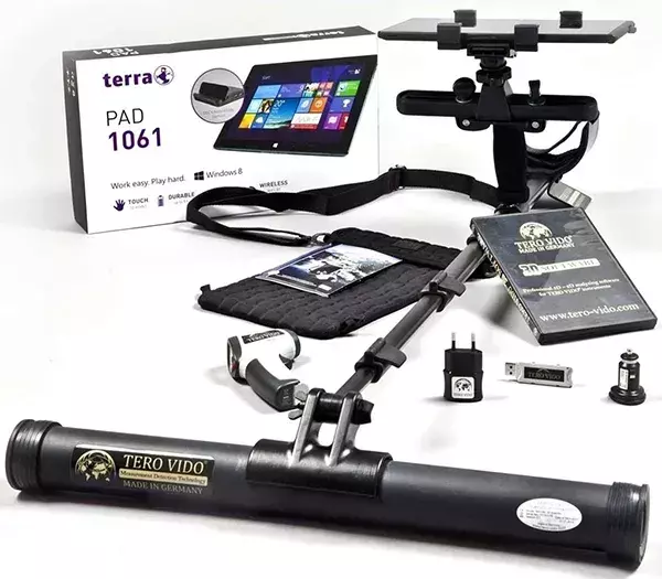 Todo el dispositivo ha sido desarrollado y fabricado en Alemania. Este detector le ayuda a descubrir y discriminar todo tipo de metales. El software incluido muestra si encontró metales magnéticos como hierro o acero, o metales preciosos no magnéticos como oro, plata o cobre. Además, el sistema Tero Vido es más adecuado para detectar y localizar vacíos subterráneos, como búnkeres, tumbas, túneles u otras habitaciones.